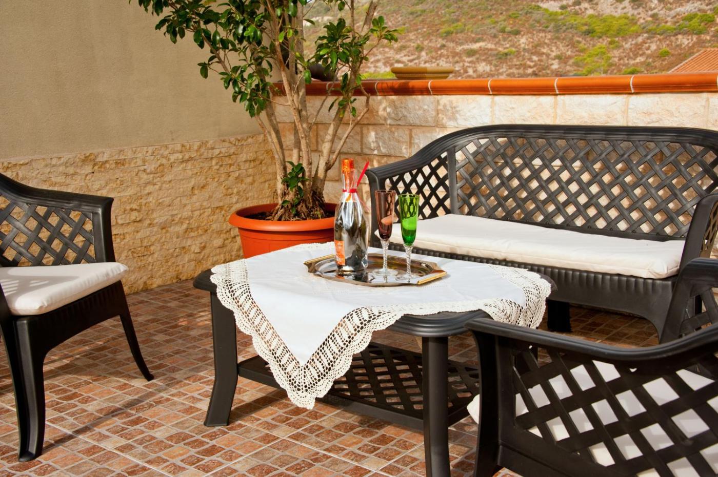 The holiday home provides guests with a terrace, sea views, a seating area, cable flat-screen TV, a fully equipped kitchen with an oven and a fridge, and a private bathroom with walk-in shower and bathrobes. A balcony with an outdoor dining area and mountain views is offered inunits. At the holiday home, units are fitted with bed linen and towels.
