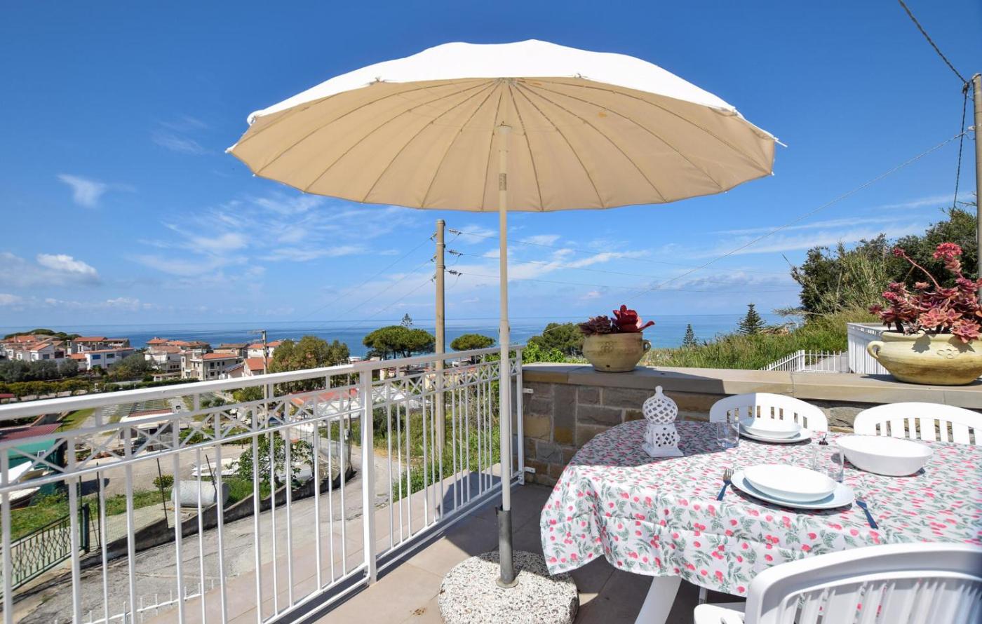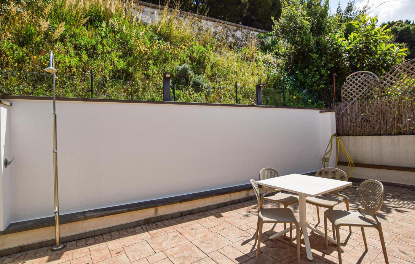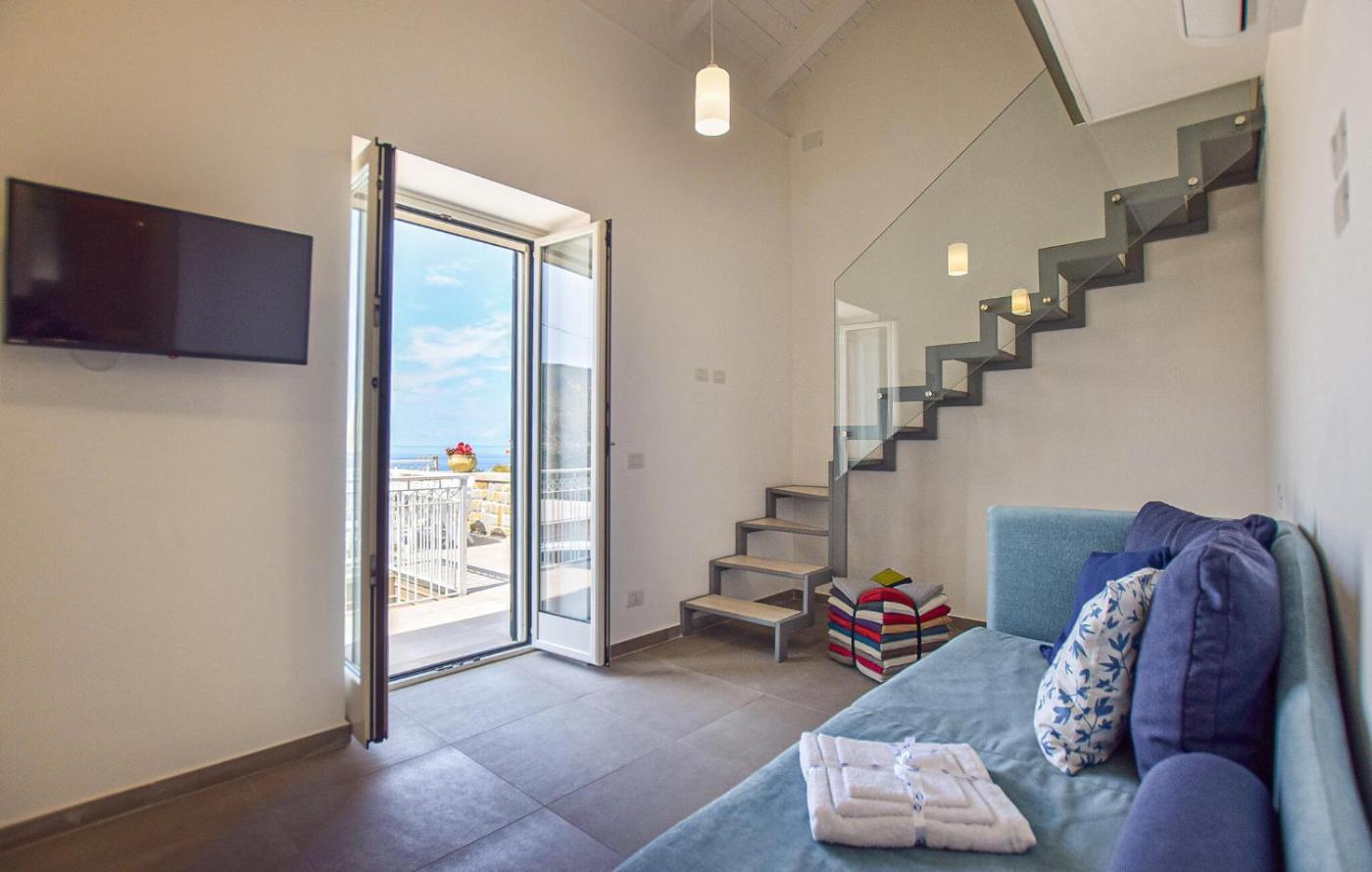 The holiday home with a terrace and sea views features 1 bedroom, a living room, a TV, an equipped kitchen with a dishwasher and an oven, and 1 bathroom with a shower. For added privacy, the accommodation features a private entrance.