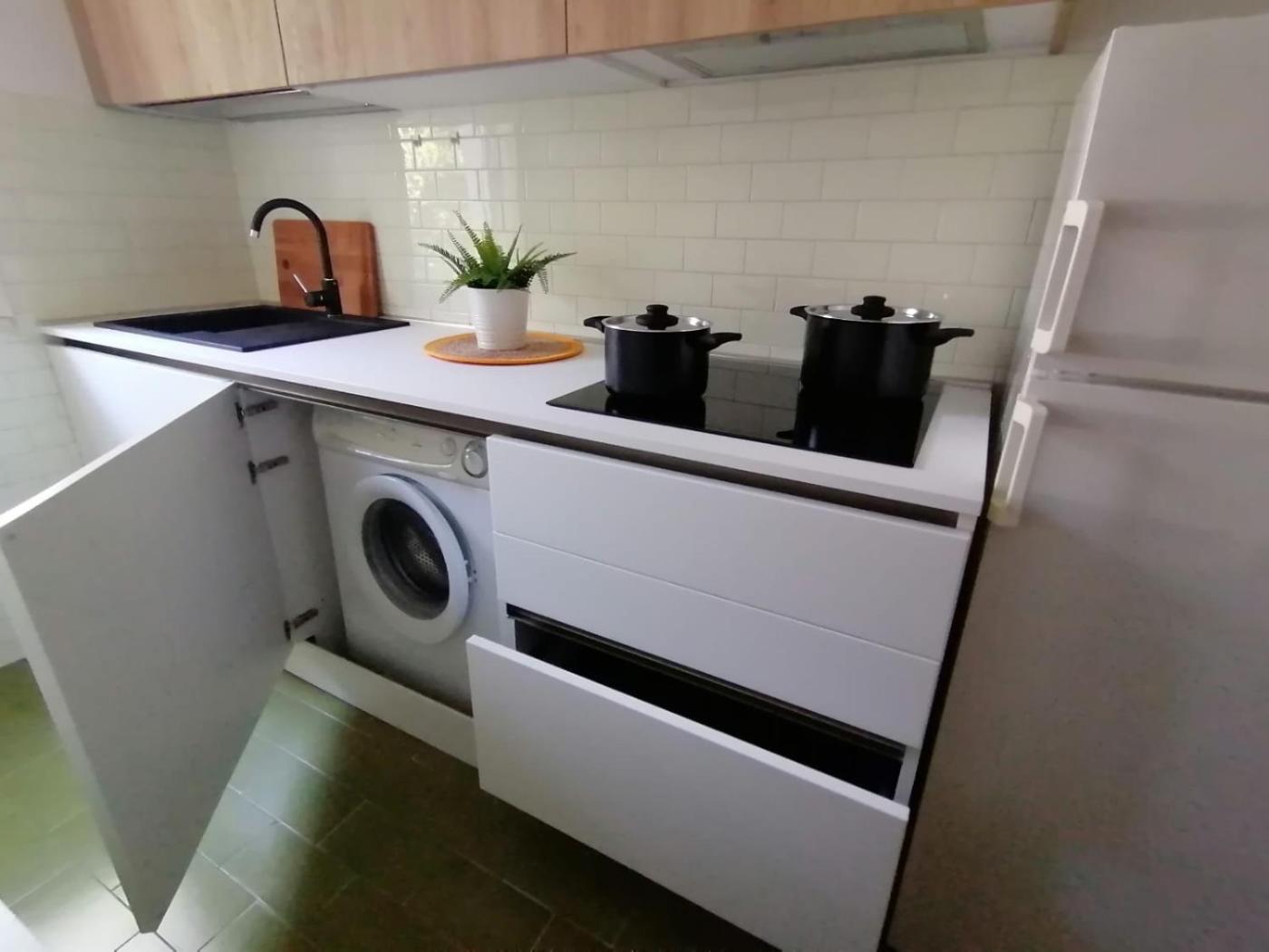 One-Bedroom Apartment. This air-conditioned apartment comes with 1 living room, 1 separate bedroom and 1 bathroom with a bath. The fully equipped kitchen has a stovetop, a refrigerator, kitchenware and an oven. Boasting a terrace with garden views, this apartment also features a washing machine and a flat-screen TV. The unit has 2 beds.
