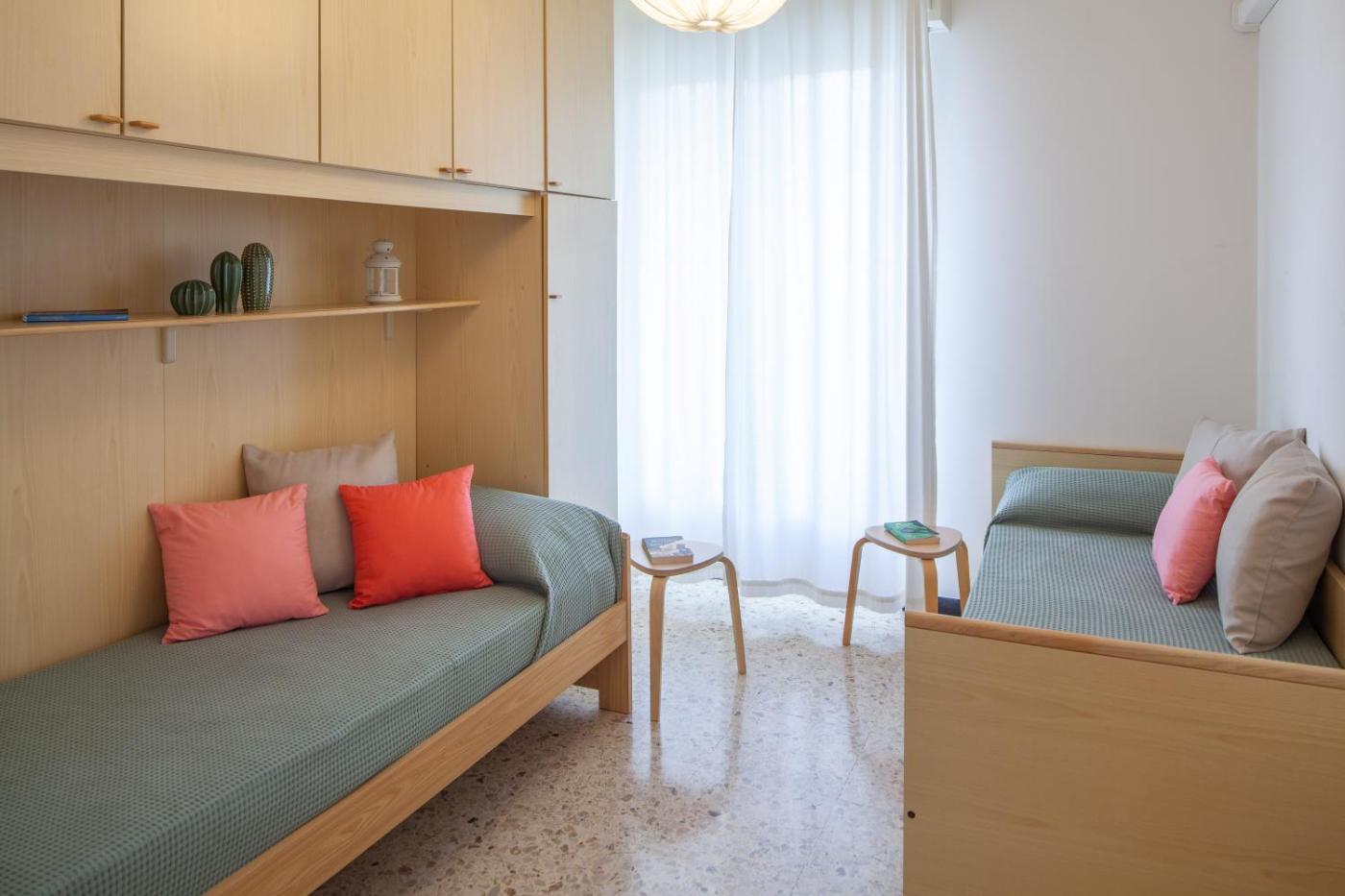 Two-Bedroom Apartment. This spacious apartment is comprised of 1 living room, 2 separate bedrooms and 1 bathroom with a bath and a shower. The well-fitted kitchen features a stovetop, a refrigerator, kitchenware and a toaster. The air-conditioned apartment offers a flat-screen TV, a washing machine, a seating area, a wardrobe as well as a quiet street view. The unit offers 4 beds.