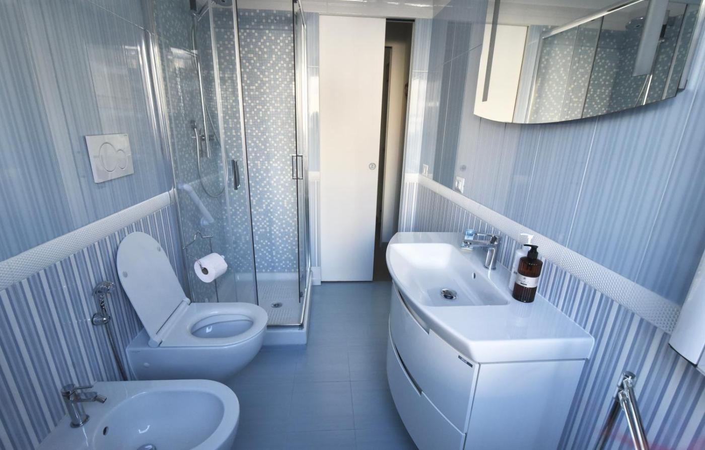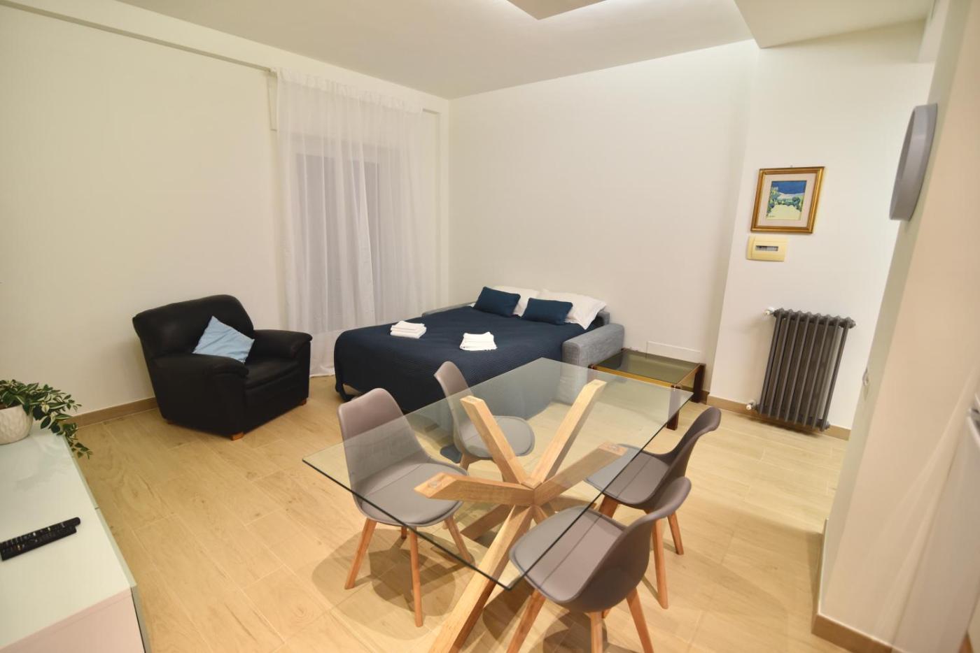 One-Bedroom Apartment. Featuring a private entrance, this air-conditioned apartment comprises 2 living rooms, 1 separate bedroom and 1 bathroom with a shower and a bidet. Meals can be prepared in the kitchen, which comes with a stovetop, a refrigerator, kitchenware and an oven. This wheelchair accessible apartment features a washing machine, a seating area with a flat-screen TV and a shower chair. The unit offers 2 beds.