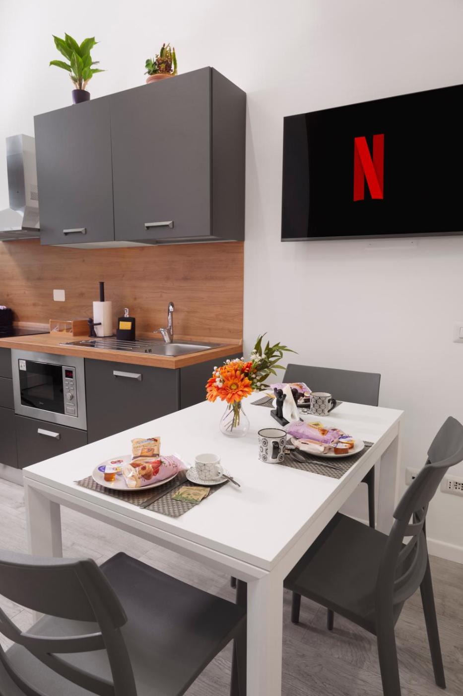 An Italian breakfast is available at the apartment.