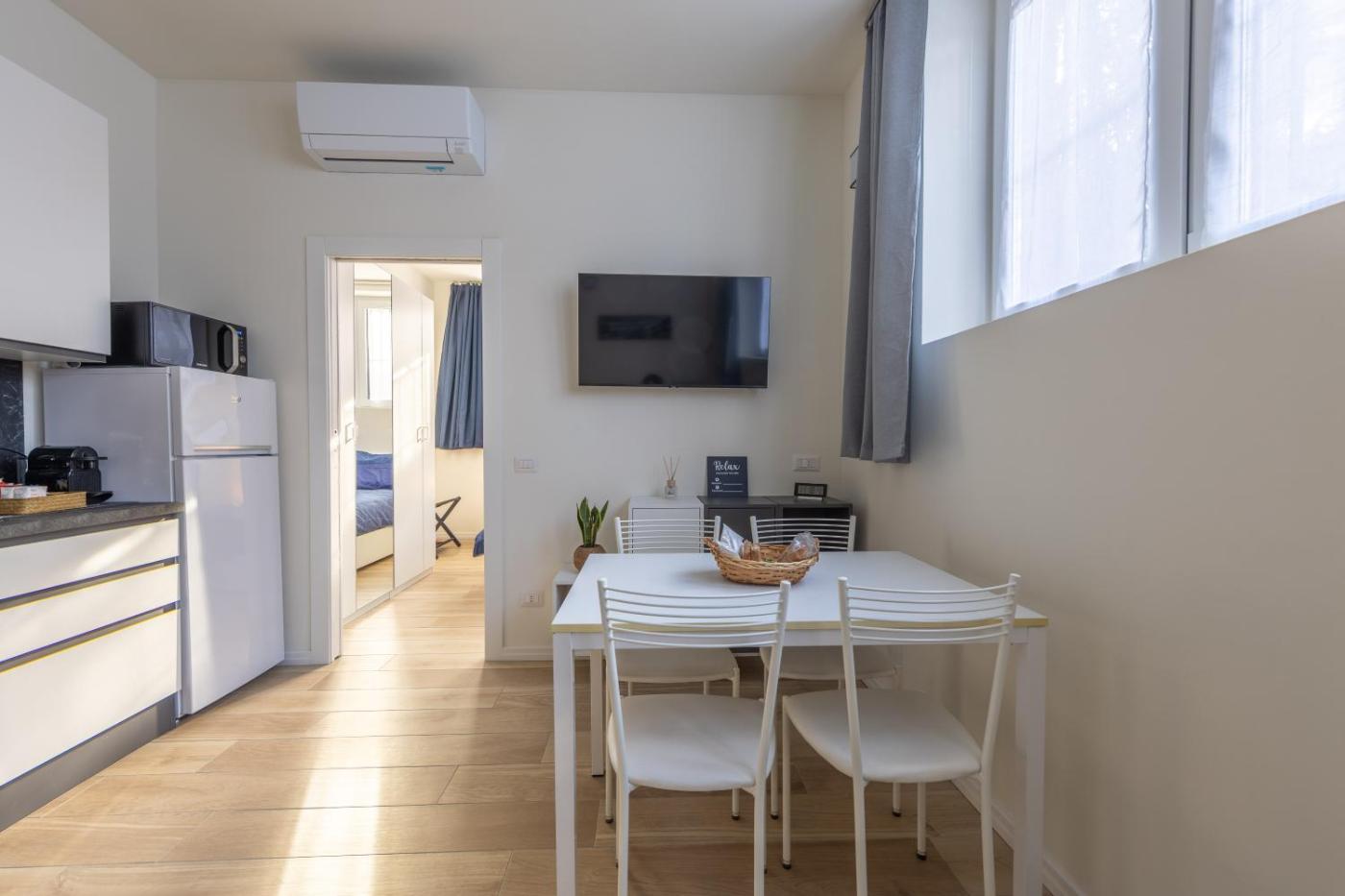 One-Bedroom Apartment. This apartment includes 1 living room, 1 separate bedroom and 1 bathroom with a shower and free toiletries. In the kitchen, guests will find a stovetop, a refrigerator, a dishwasher and kitchenware. The air-conditioned apartment offers a flat-screen TV with streaming services, a washing machine, a tea and coffee maker, a seating area as well as ancourtyard view. The unit has 2 beds.