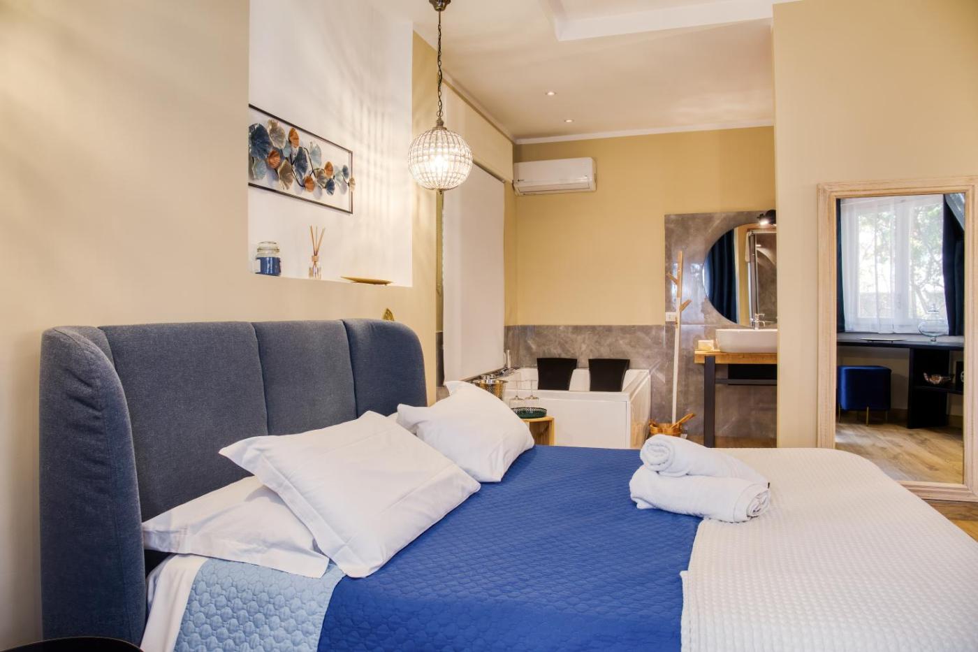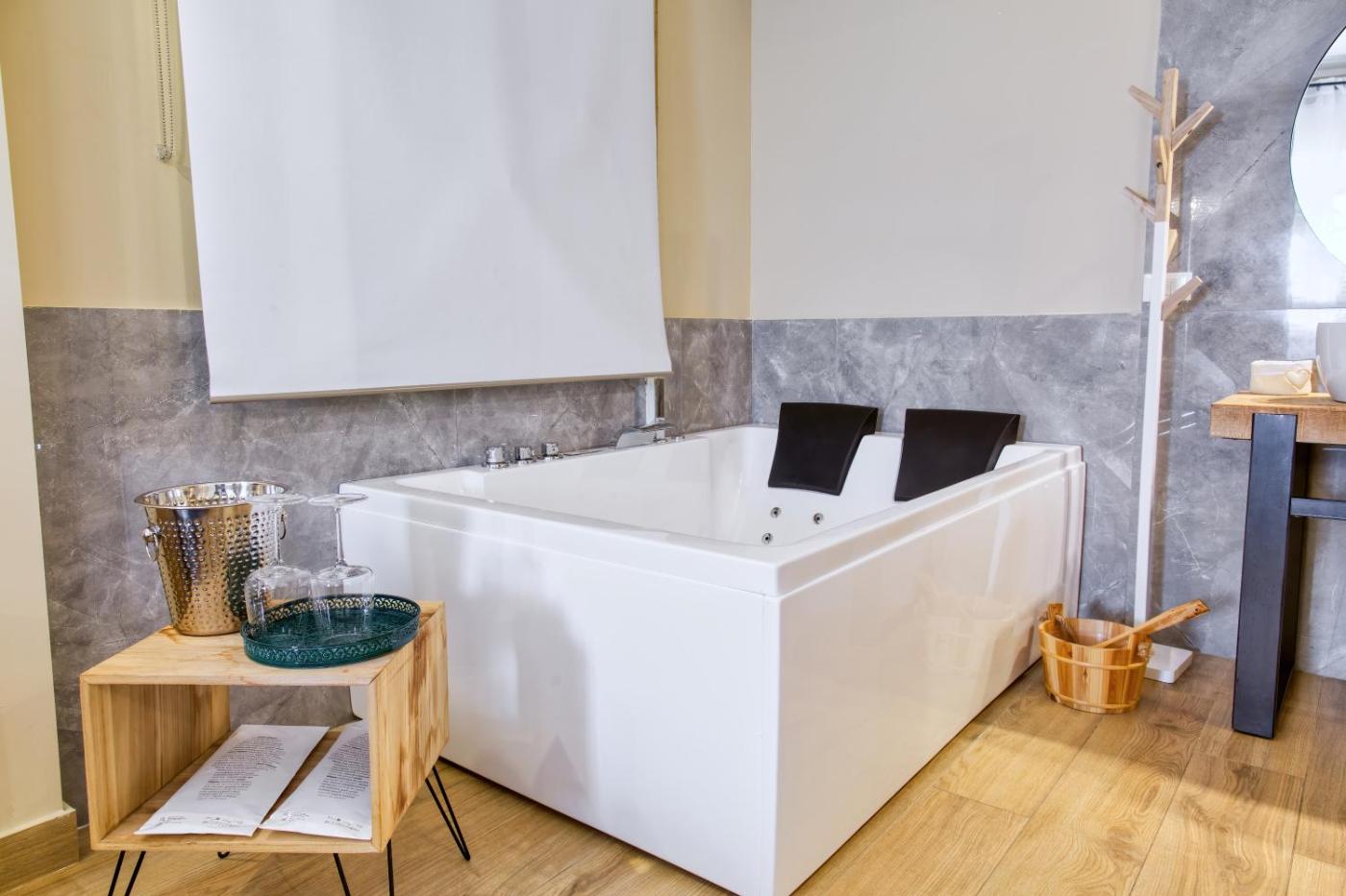 Deluxe Suite with Spa Bath. The pool with a view and hot tub are the standout features of this suite. Featuring a private entrance, this air-conditioned suite comprises a kitchen, 1 bedroom and 1 bathroom with a bath and a shower. The well-equipped kitchen has a stovetop, a refrigerator, kitchenware and an oven. This suite features a washing machine, flat-screen TV with cable channels, ancourtyard view, as well as winechampagne for guests. The unit offers 1 bed. ;