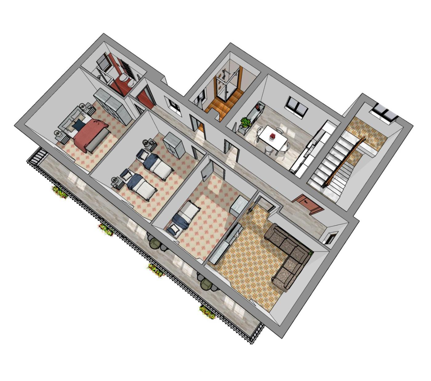 Three-Bedroom Apartment. This spacious apartment comprises 1 living room, 3 separate bedrooms and 2 bathrooms with a shower and a bidet. In the kitchen, guests will find a stovetop, a refrigerator, kitchenware and an oven. Featuring a balcony with sea views, this apartment also provides a washing machine and a flat-screen TV. The unit offers 4 beds.